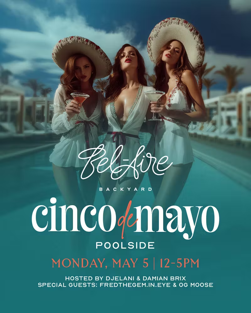 On Sunday, May 5th, from 12PM–5PM, Bel-Aire Backyard invites you to kick off summer vibes early with a lively afternoon of poolside cocktails, live DJs, show-stopping prformances, and unbeatable drink specials.